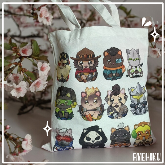 Overwatch Kitties Double Sided Canvas Tote Bag | Illustrated Cute Tote Bag | Anime | Kawaii |
