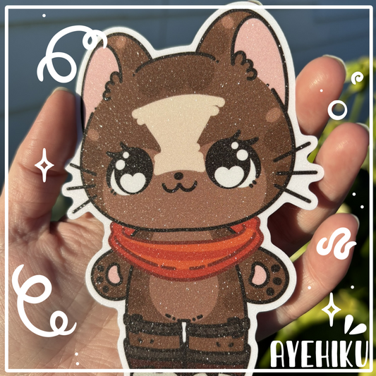 Ekko Cat Cute 5 Inch Vinyl Glitter Sticker | Kitty | Kawaii | Anime