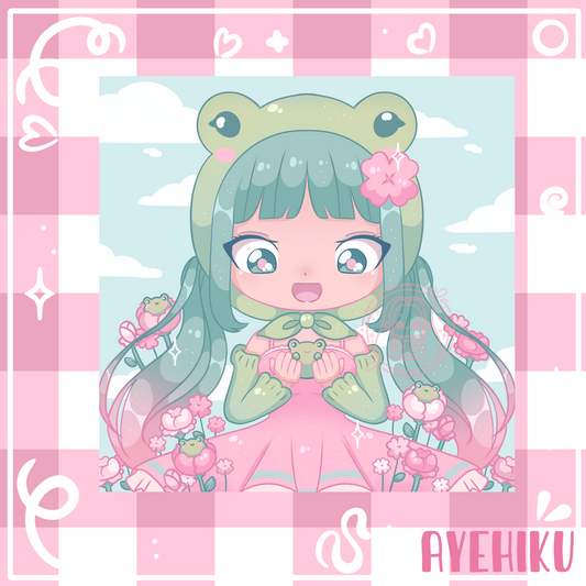 Frog Girl Cute Print Poster | Matte | Chibi | Kawaii
